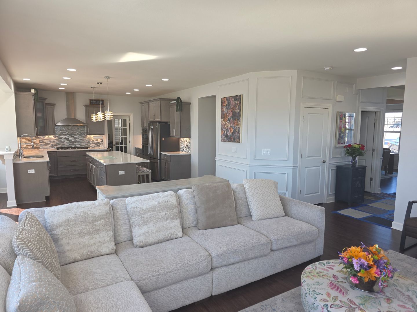 Available June 1st! Like new Sussex 5 bedroom 3.5 bath home. The main level opens to a formal living and dining room, large great room with fireplace and wall of windows. Amazing kitchen with large island, breakfast bar and upgraded appliances. Private office, step-in pantry, prep counter and family cubby area make this home perfect for easy living. The upper level includes a primary suite with dual walk-in closets, soaking tub, deluxe shower and water closet. Full laundry room, bonus family room and 3 more bedrooms. Finished basement with 2nd kitchen, 5th bedroom and 3rd full bathroom. The backyard includes a huge patio with access from the basement and steps to the large wrap-around deck on off of the kitchen. 3 car garage and bonus storage.