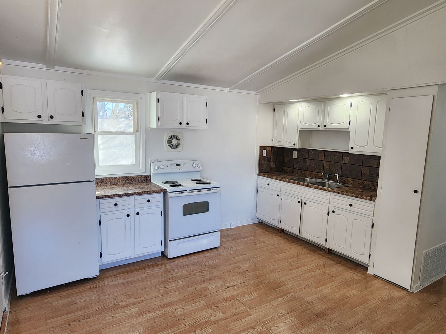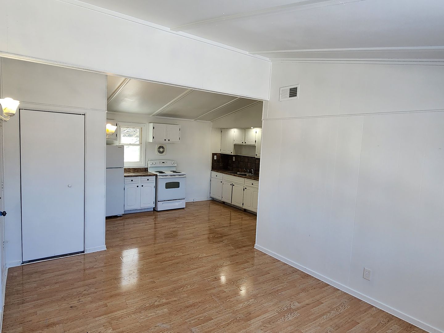 This freshly updated 1 bedroom 1 bathroom upper apartment is available now. This unit offers a sunny living room, full kitchen with stove and refrigerator included and a large pantry. Building includes coin-operated laundry and additional storage locker. Off-street parking is included in the parking lot. New property owner is doing upgrades across all units and common areas.