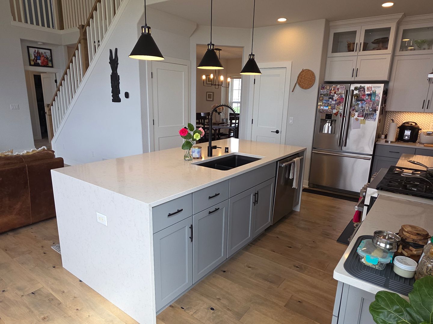 The main level features the 2 story great room with fireplace, full kitchen with stainless steel appliances, large island and walk-in pantry. Primary suite includes dual sink vanity, tiled shower and huge walk-in closet. Formal dining room, laundry room with washer/dryer and powder room. Upstairs features 3 more bedrooms, full bathroom with dual sink vanity and separate shower room. The lower level is a finished walk-out to the private patio and includes the 5th bedroom and 3rd full bathroom. Attached 3.5 car garage included.