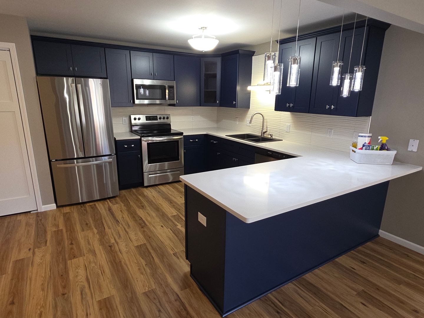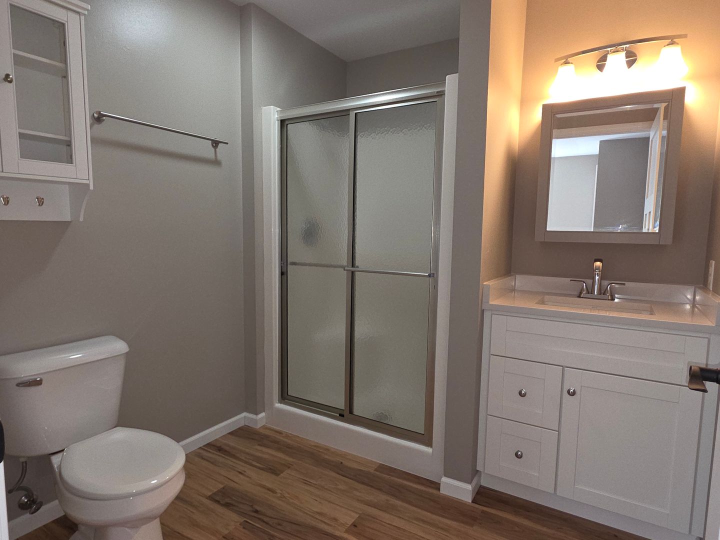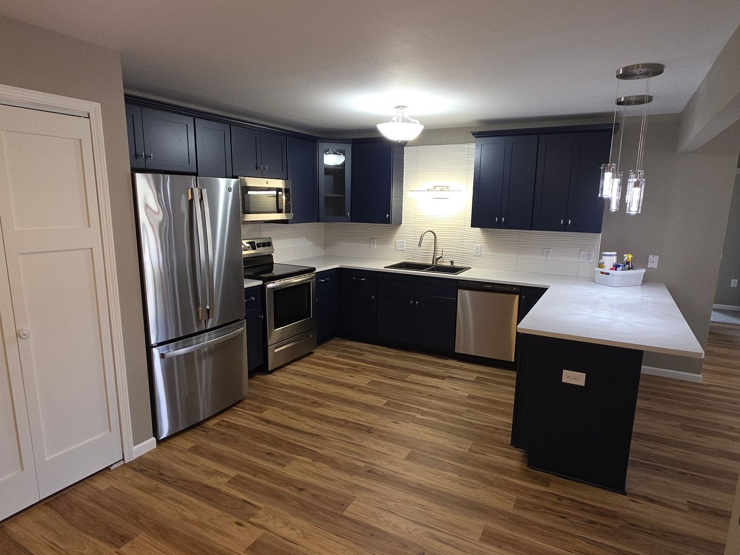 Totally remodeled 2-bedroom 2 bathroom lower in Lake Country. You will love the beautiful open concept kitchen with brand new cabinets, breakfast bar, walk-in pantry and enough room for a table for four. Full suite of stainless steel appliances, in unit full size Washer and dryer, quartz countertops and amazing walk-in pantry with custom shelving. New LVP flooring throughout with carpeted bedrooms. Both bedrooms are large and have custom shelving in the closets. Both bathrooms have received updates as well.